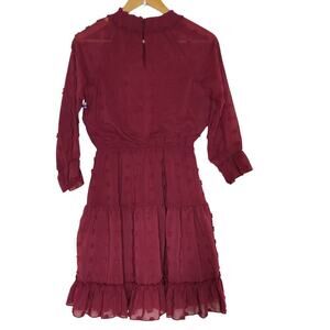 Ava & Yelly Dress Swiss Dot Chiffon Long Sleeve Mock Neck Blouson Mini Red 14