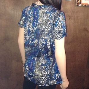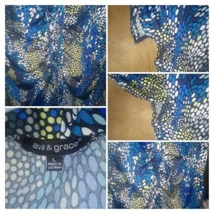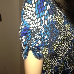 Top is multi-color with tie neck line.It has beautiful ruching design along the front and sleeves.