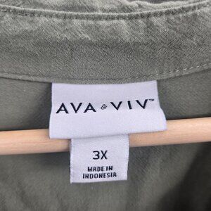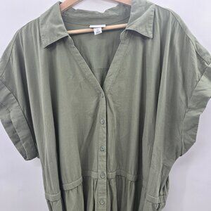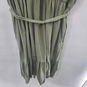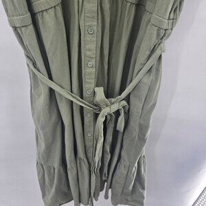 Ava and Viv Green V-Neck Buttoned Belted 100% Cotton Midi Dress 3x