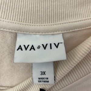 NWT Ava and Viv brand sweatshirt size 3XL. This sweatshirt is made from 100-% cotton in a cream color. Very comfortable and medium weight, not too heavy. Features a mock neck neckline and some subtle gathering and seaming at the end of the sleeves for added detail. Great price to dress up or dress down.