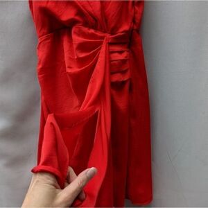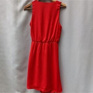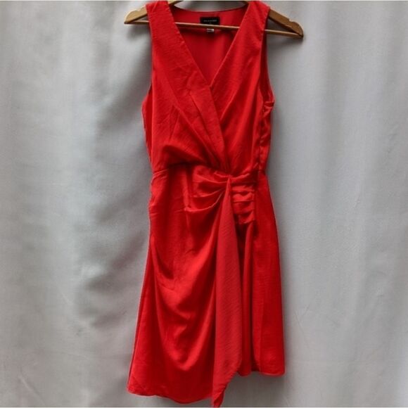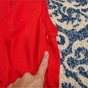 Ava and Aiden orange red dress that feels like silk. Great condition. Size xs. It gathers on one side of the waist and can be tied.