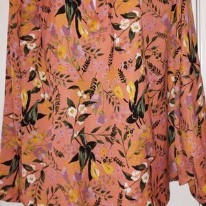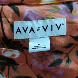 Ava & Viv burnt orange v neck floral sheer print blouse Sz 1X