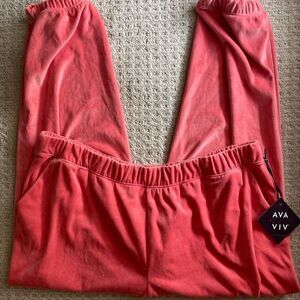 NWT Ava & Viv High Rise Relaxed Coral Velour Joggers 75% cotton 25% polyester Super comfy Size 2X