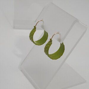 Avacado Green Copper Wire Pierced Earrings Basket Weave Boho Hoops Retro A5