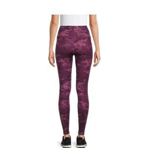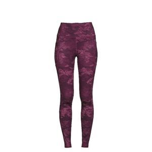 These are Core High Performance leggings. Color is burgundy with an animal print pattern throughout.