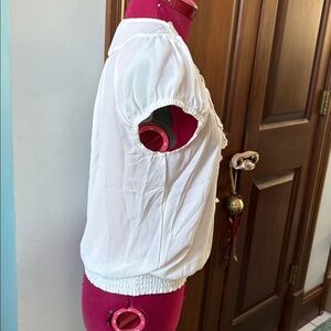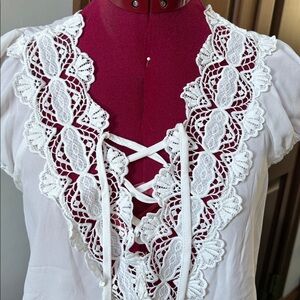 Available by Angela fashion blouse 100%poly lace, trimmed V-neck lace up NWOT