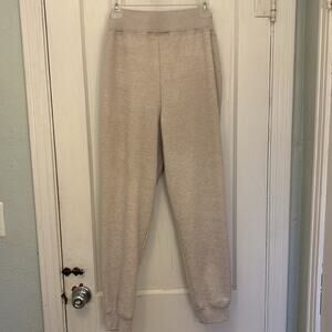 Comfortable cream fleece lined jogger/track pants. Features drawstring waist and pockets. Perfect for casual wear.