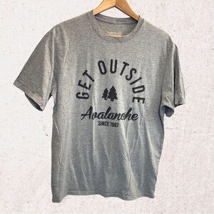 Embrace the outdoors with the Avalanche Gray Short Sleeve Tee, featuring a bold 'GET OUTSIDE' print and a nature-inspired tree graphic. Crafted from comfortable heather gray fabric, this tee is perfect for those who love nature and adventure.