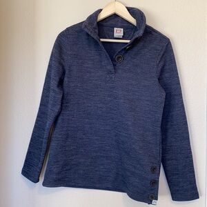 Avalanche Heathered Navy Cozy Quarter Button Sweater sz Small