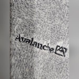 Avalanche sherpa fleece robe jacket. nice for tossing on in spring / fall weather. size small but fits larger. grayish / purple coloring