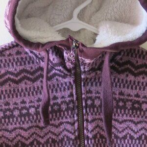 Avalanche Sweater Jacket Brown Geometric Full Zipper Sherpa Fleece Hoodie Size M