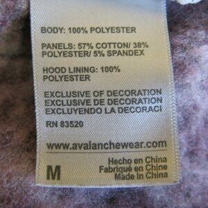 This sport Avalanche Sweater Jacket is going to be comfortable and warm. The body is made of 100% polyester and the solid brown panels are made of 57% Cotton, 38% Polyester and 5% Spandex. The hood lining is 100% polyester.