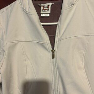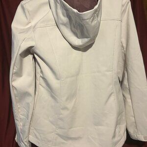 Avalanche Fleece Lined Hoodie Soft shell fabric repels water, hidden inside pocket cream color sz M excellent condition n no flaws