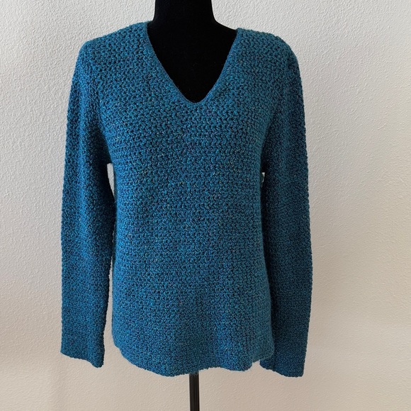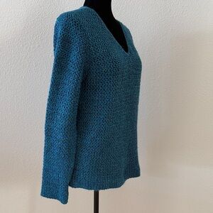 Stay cozy and stylish with this elegant blue V-neck sweater. Perfect for any occasion, this sweater offers both comfort and fashion.