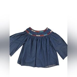 Avani del amour top. Beautiful detailed embroidery. Long bell sleeves. Excellent condition. Blue Jean color.