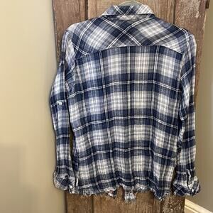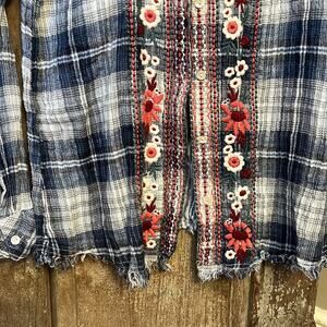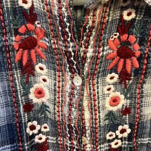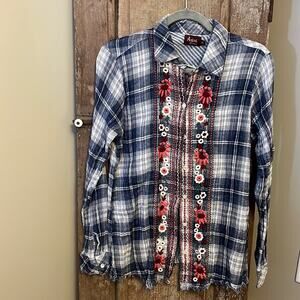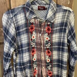 Avani del amour Blue Plaid And Floral Embroidery Shirt-XL