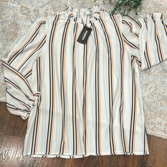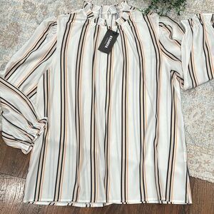 A cream, black and golden yellow top from Avanova, size large, NWT. Shoulders 15” PTP 22” Length 26.5” F8