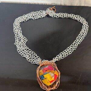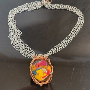 Avant Garde Necklace Handmade Silver Chain Resin Colorful Funky African Runway
