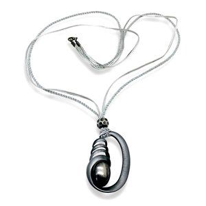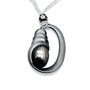 Avant Garde Pendant Necklace, 33 in, Pewter, Silver Plated Metal, Metallic Braid, Futuristic Modernist Abstract Eccentric Charm, Business Casual, Boho Hippie, Party Going Out, Artisan Jewelry Gift