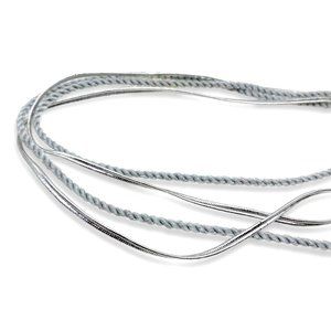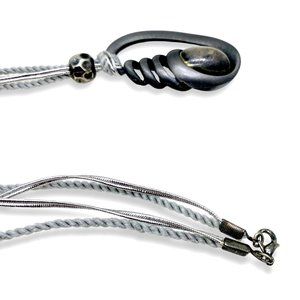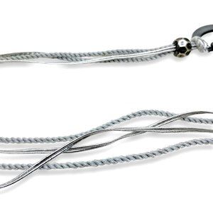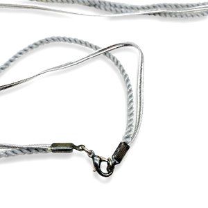 - MATERIAL: Pewter, Silver Plated Metal, Silver Metallic Braided Cord , Gray Thread