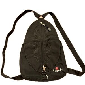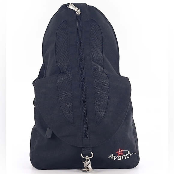 This Avanti Backpack is practically new, with no obvious signs of being worn or washed, and it comes in a sleek black color. The bag measures 8 inches in length, 14 inches in height, and 3 inches in depth.
