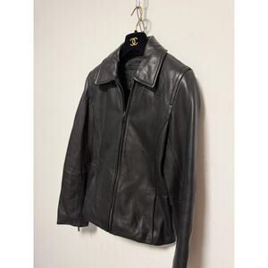 Avanti New York Leather Jacket Womens Small Black Zip Front Genuine Moto Style