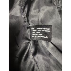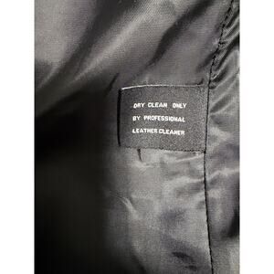 Details: Full front zip closure, structured collar, contoured seaming for a flattering fit, front pockets, zippered sleeve cuffs, fully lined interior. Care instructions indicate dry clean only by a professional leather cleaner. WPL 7888; made in China.