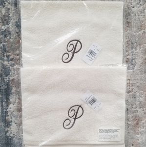 Classic monogrammed letter "P" towel set made by Avanti! Ivory colored towels with brown script monograms.