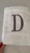 Elegant white towel with monogrammed silver stitched “D”. Ideal for stylish bathroom decor.