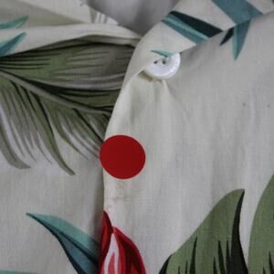 Pattern/Color: Tropical hibiscus and foliage print in red/green/teal on an ivory base
