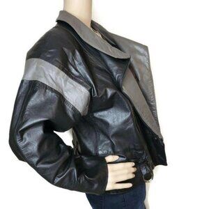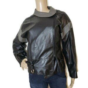 Avanti vintage Womens Leather Jacket Size 8 Black & Gray Asymmetrical Zip moto