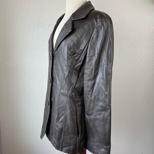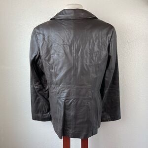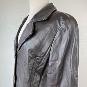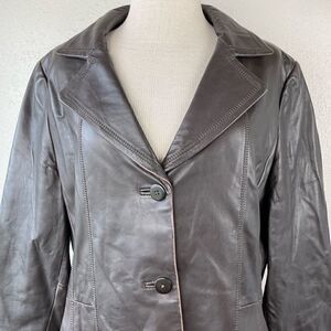 Super soft dark brown leather jacket by Avanti New York in excellent preowned condition. It measures 22 inches armpit to armpit laying flat and 29 inches in length from shoulder to hem.