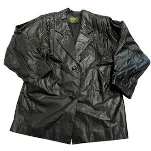Avantia Leather Vintage Blazer Jacket in Black