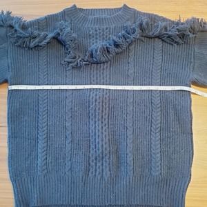 Avantlook Fringed Long Sleeve Cable knit Boho Crewneck Sweater Sz S Black Goth Cozy