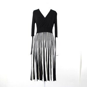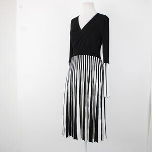 Avantlook Sz M Black White V Neck Striped Surplice 100% Polyester Dress