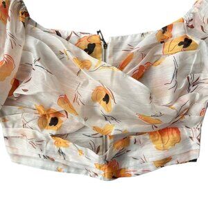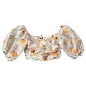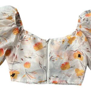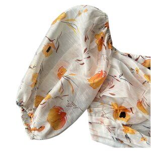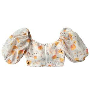 Avantlook Women's Floral Puff Sleeve Crop Blouse White Medium Cottagecore
