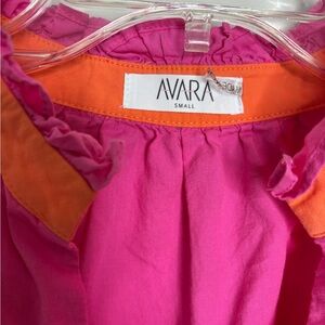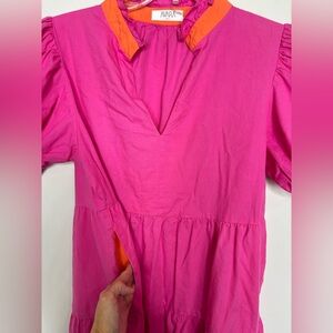 Bright and playful kids dress in vibrant pink with an orange collar. Perfect for any occasion.