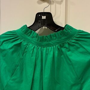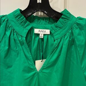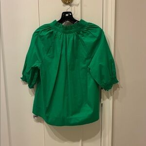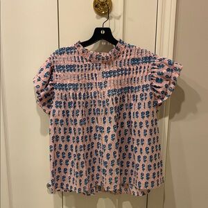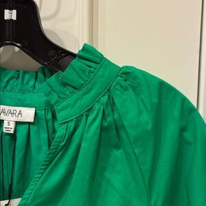 (NWT) Avara Short Sleeve Split Neck Top with Ruffle Trim Around Neck and Elastic/Ruffle Trim On Sleeve Retail $64