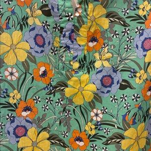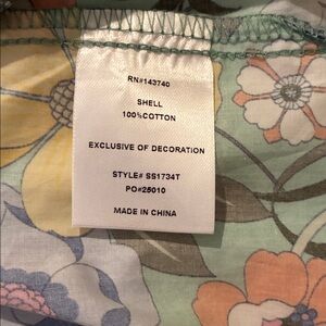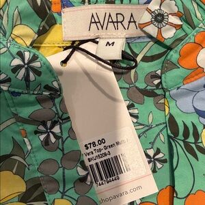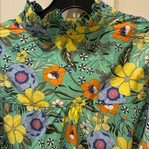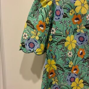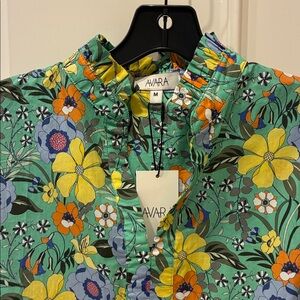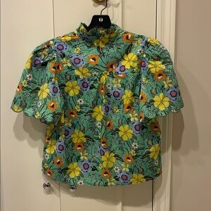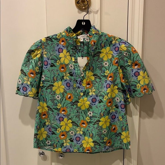 (NWT) Avara Floral Split Neck Short Sleeve Top with Ruffle Trim - Scallop Trim on Sleeve - Retail $78