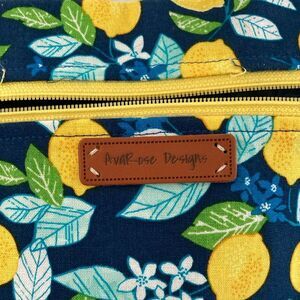 This vibrant crossbody bag showcases a lively yellow and blue floral pattern, perfect for adding a splash of color to your ensemble. Its lightweight design and medium size make it an ideal choice for casual outings, while the cheerful pattern ensures it stands out as a fun accessory. 9.5 across, 9 in height, in good condition