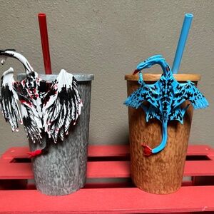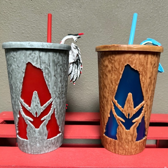 Avatar Fire and Ash Light Up Tumbler Cups with Red and Blue Straws, Regal Theaters Exclusive. Both cups are BRAND NEW, UNSED, and in EXCELLENT CONDITION. NO DAMAGES