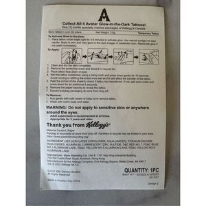Avatar Way of Water glow in the dark Kelloggs temporary tattoo ikran banshee Dis