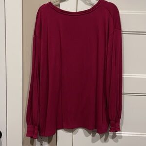 Ava+viv cranberry red long sleeve top w/elastic wrists 2X Like New. Worn once.