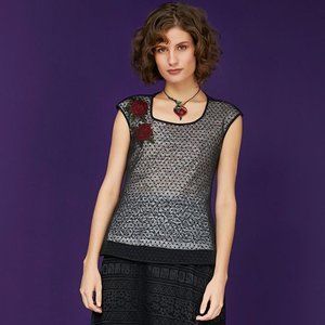 Gorgeous mesh top from Brazilian boutique brand, Ave Maria. Features a textured mesh overlay of a large photorealistic rose with a built-in black liner. Sexy cap sleeve, scoop neck styling with slight flare across hips. In like new condition. Brazilian size 42. Laying flat and unstretched, the top is 17" across bust, 15" across waist and 20" across widest part of hips. Stretchy fabric. Last couple of photos show a similar style currently available on the website.