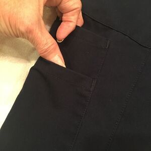 Medline Ave size small. Dark Navy blue with black elastic waistband with tie.