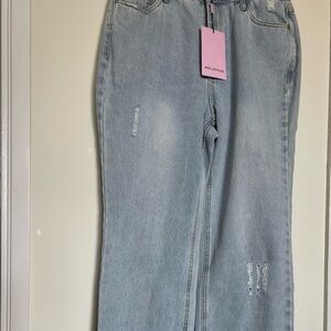 Avec Les Filles Ripped Jeans with Slit Hem in Powder Blue Light Wash Size 30 NEW WITH TAGS!