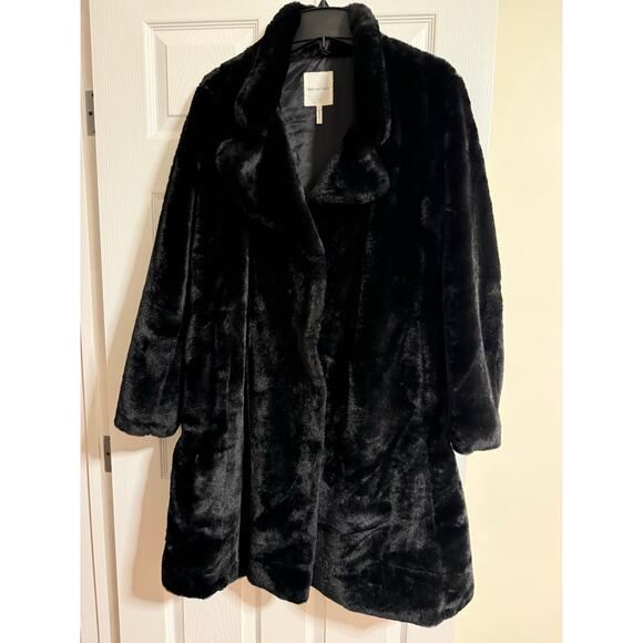 Avec Lea Filles Black Faux Fur Midi Coat size XL