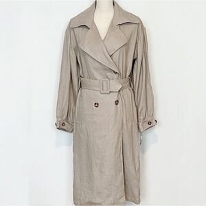Avec Les Filles 100% Linen Belted Trench Coat Taupe Small NWOT