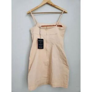 This chic and minimalistic ecru mini dress from Avec Les Filles combines effortless polish with a flattering, structured silhouette. Designed with adjustable spaghetti straps, a seamed waistline, and a tailored fit, this piece is perfect for both casual days and warm-weather outings.