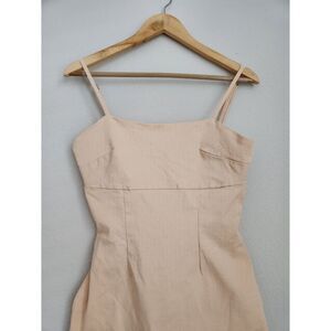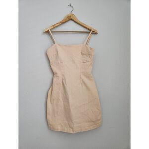 This chic and minimalistic ecru mini dress from Avec Les Filles combines effortless polish with a flattering, structured silhouette. Designed with adjustable spaghetti straps, a seamed waistline, and a tailored fit, this piece is perfect for both casual days and warm-weather outings.